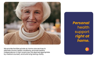 We began with thorough market research, identifying Glorious Care’s position in the upper-middle market offering high-quality, accessible services. To create a relatable and human brand, we developed a verbal identity that emphasized client autonomy and dignity—contrasting typical industry language that often portrays clients as helpless. Our messaging focused on a holistic approach aimed at supporting clients’ independence and alleviating family burdens, especially for those facing serious health challenges.